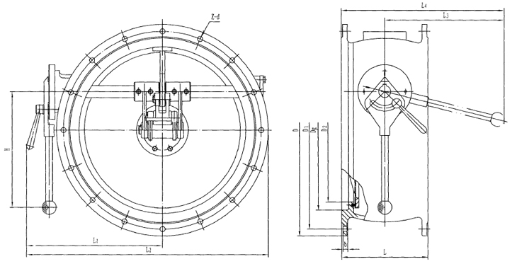 手動雙連桿密閉閥門是設置在通風系統(tǒng)中,其特點是能阻止毒劑通過管道進入工程內(nèi)部,也可用于轉(zhuǎn)換通風方式。